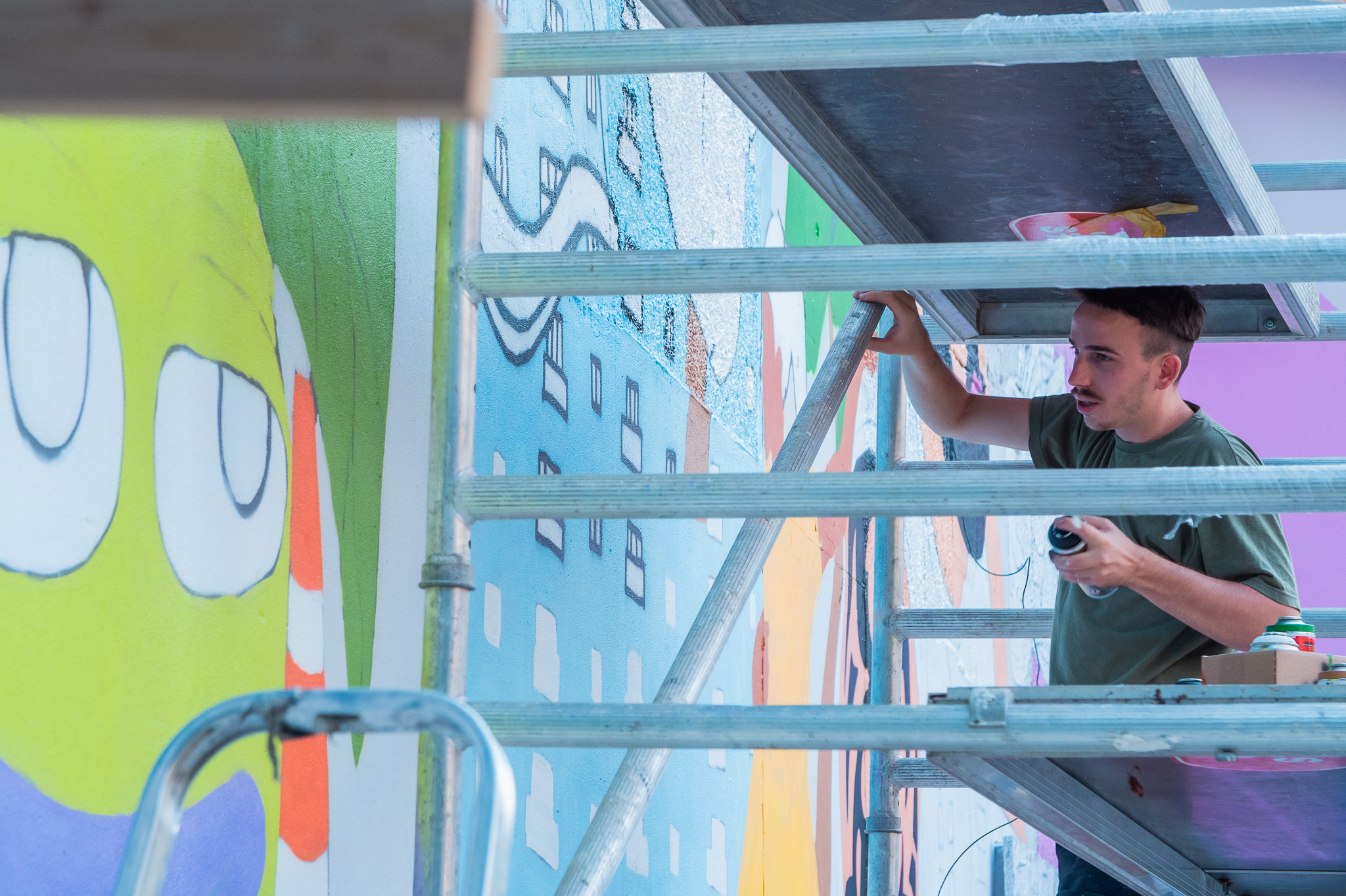 Wall project made during a residence, organized by Street Art Communication in Košice, Slovakia. We were working on a topic “panel house” and as a result made a mural in Tabačka Kulturfabrik - local basecamp for everyday culture.